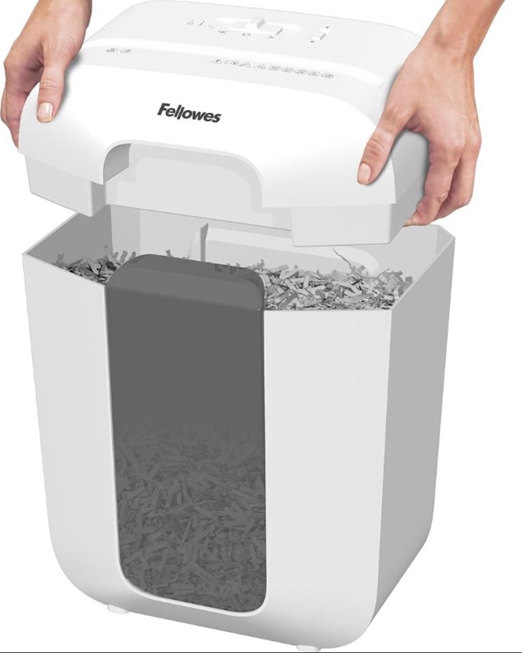 PAPIERVERNIETIGER LX50 WIT, voor gebruik in de thuisomgeving en het thuiskantoor. Vernietigt tot 9 vel per keer in 4x37 mm. Safety Lock schakelt de papiervernietiger uit voor extra veiligheidsbescherming. Versnippert continu tot 5 minuten, gevolgd door een 30 minuten durende afkoelperiode. 17L opvangbak met afneembare kop. Vernietigt ook nietjes, paperclips en creditcards.