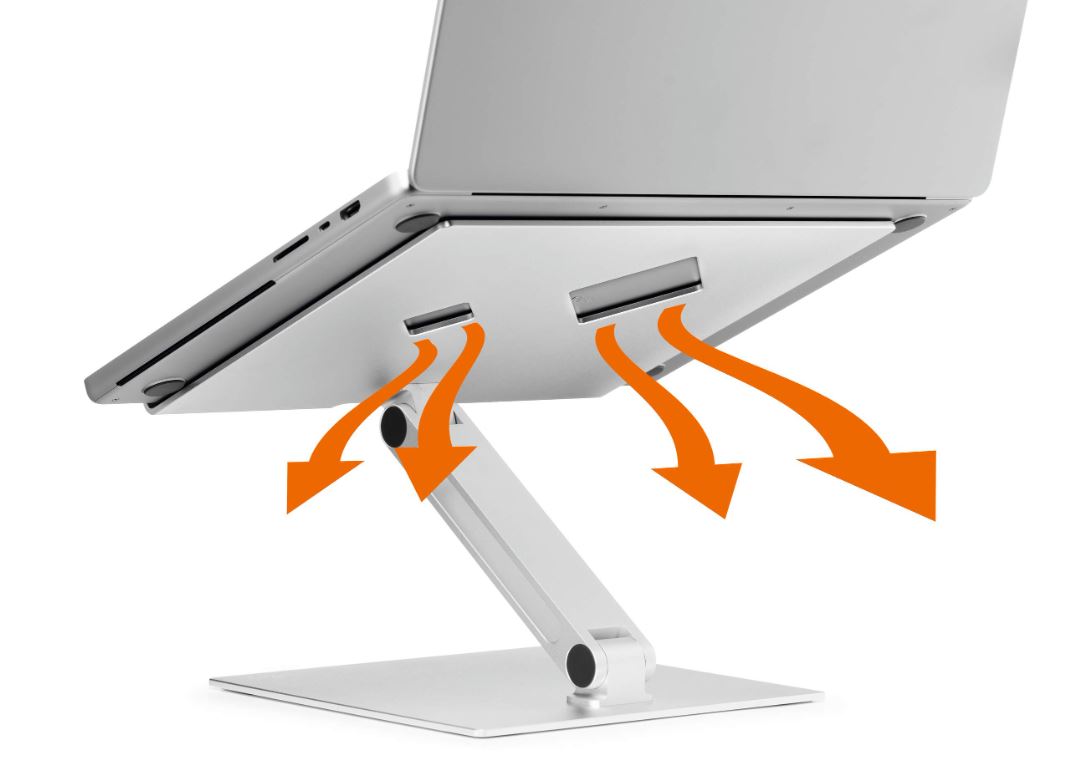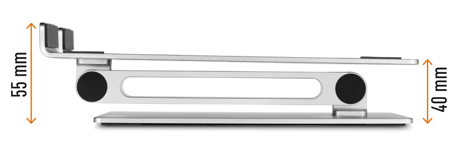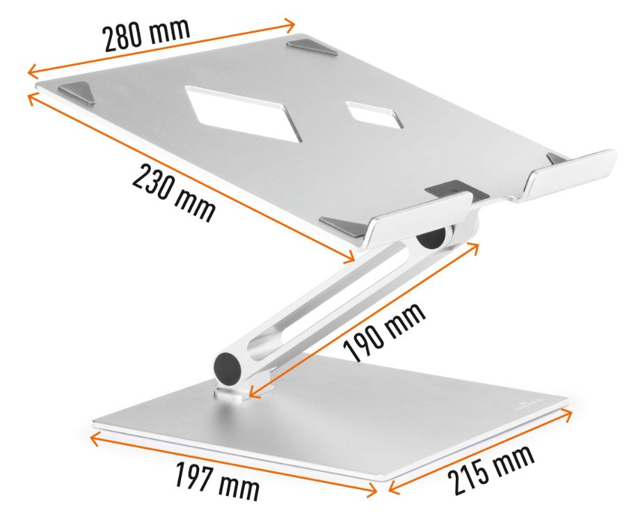 Universeel verstelbare tafelhouder voor laptops en tablets van 10” tot 17”. Maakt ergonomisch werken eenvoudiger door de flexibele hoogte- en leeshoekinstelling. Hiermee kunnen laptops als desktopbeeldscherm worden gebruikt in combinatie met een extern toetsenbord en muis. Hoge stabiliteit voor veilig werken. Slipvaste rubberbekleding beschermt tegen krassen. Ruimtebesparend inklapbaar en verplaatsbaar. Verbeterde warmteafvoer door ventilatiegaten en aluminiumplaat. Grote verzonken greep voor het eenvoudig openen en sluiten van de laptop. Extreem robuust van 3,5 mm sterk aluminium om de laptop langdurig en betrouwbaar te steunen. Geeft plaats en orde op het bureau
