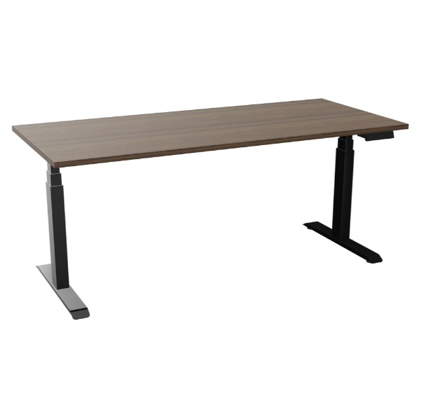 Axel 2 rechth. bur B. 180 x D. 80 cm - Voorgeboord vr kabeldoppen -Elektrische hoogteregeling - Blad dikte 25 mm in bruin notelaar melamine - onderstel zwart glad metaal - 4 gebruikers x 2 memory + USB