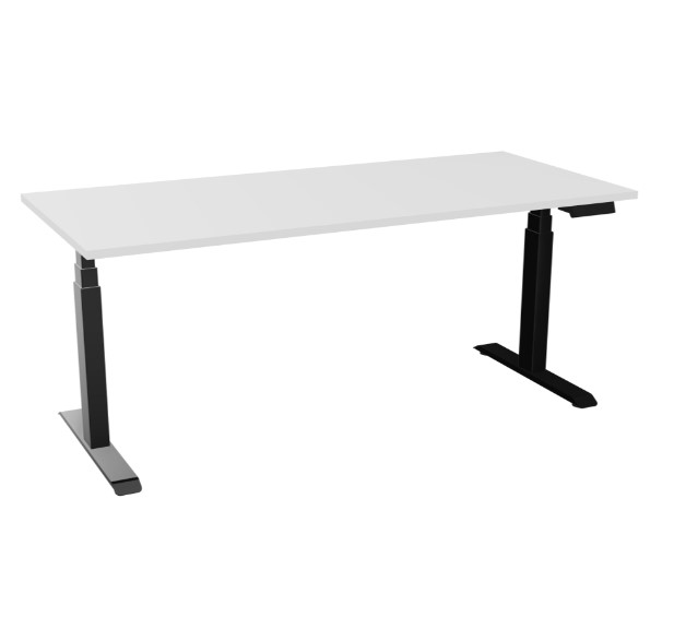 Axel 2 rechth. bur B. 180 x D. 80 cm - Voorgeboord vr kabeldoppen -Elektrische hoogteregeling - Blad dikte 25 mm in sneeuw wit melamine - onderstel zwart glad metaal - 4 gebruikers x 2 memory + USB