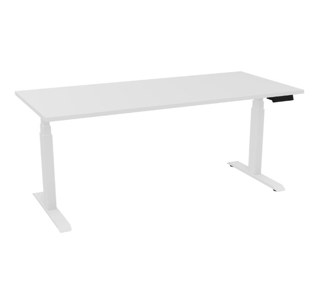 Axel 2 rechth. bur B. 180 x D. 80 cm - Voorgeboord vr kabeldoppen -Elektrische hoogteregeling - Blad dikte 25 mm in sneeuw wit melamine - onderstel wit glad metaal - 4 gebruikers x 2 memory + USB