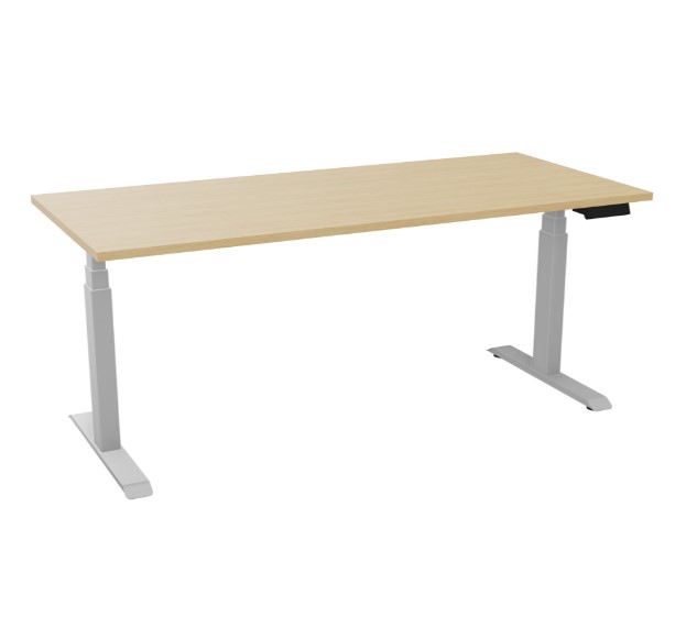 Axel 2 rechth. bur B. 180 x D. 80 cm - Voorgeboord vr kabeldoppen -Elektrische hoogteregeling - Blad dikte 25 mm in Naturel eiken - onderstel zilver grijs glad metaal - 4 gebruikers x 2 memory + USB
