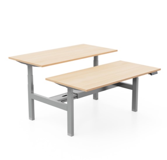Axel 2 bench bureau B. 160 x D. 80 cm - Elektrische hoogteregeling - Blad dikte 25 mm voorgeboord voor 2 kabeldoppen in Naturel eiken - onderstel zilver grijs glad metaal - 4 gebruikers x 2 memory + USB