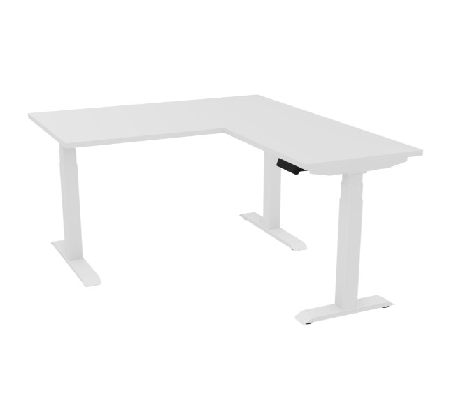 Axel 2 rechth. bur B. 140 x D. 80 cm met aanbouw B. 80 x D. 60 cm -Elektrische Hoogteregeling - Blad dikte 25 mm in sneeuw wit melamine - onderstel wit glad metaal - vierkantig poot 75x75 mm - 4 gebruikers x 2