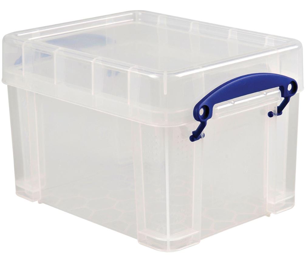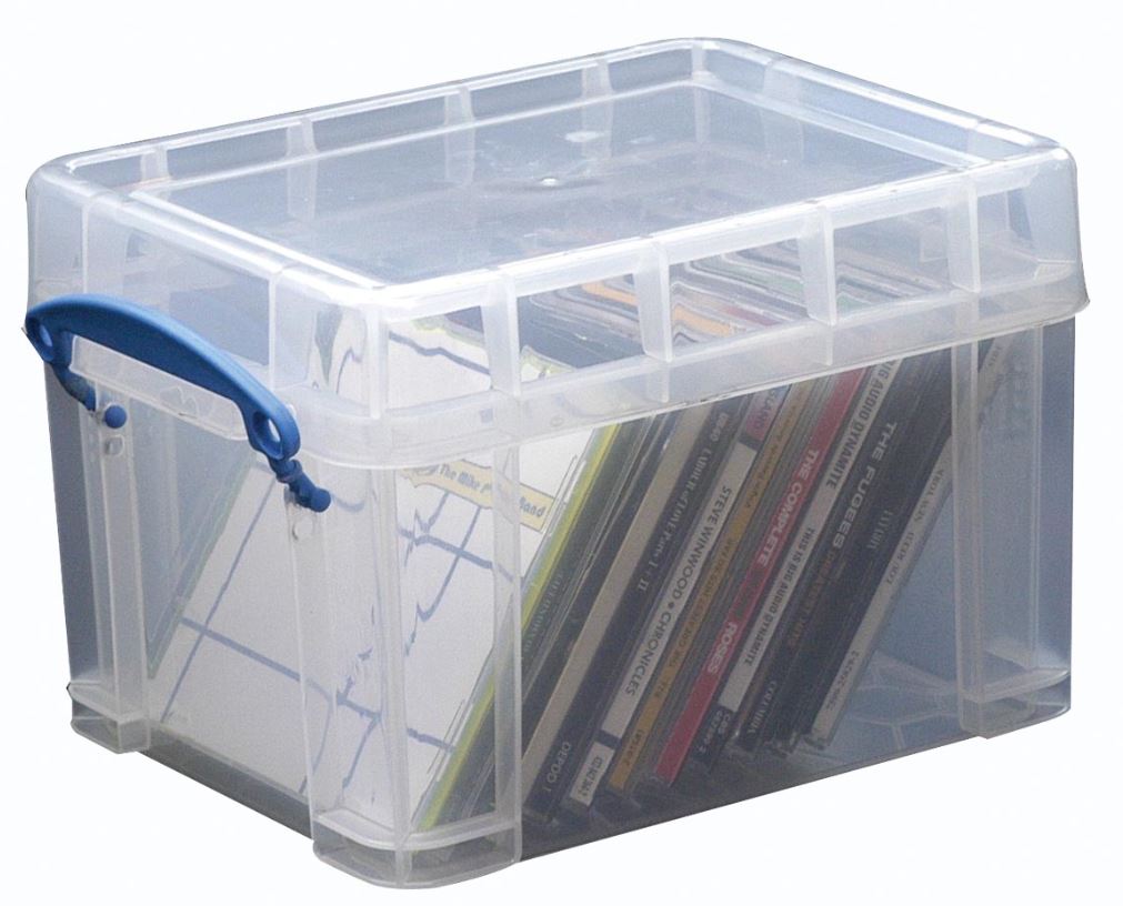 Opbergdoos uit sterke transparante kunststof. Deksel afsluitbaar met 2 clips, waardoor de inhoud beschermd wordt tegen stof en vuil. Perfect stapelbaar met of zonder deksel. Volledig platte en versterkte bodem. Voor 18 CDs of 10 DVDs. Inhoud: 3 liter. Buitenft: 24,5 x 18 x 16 cm l x b x h. Binnenft: 19 x 14,3 x 12 cm l x b x h. transparant