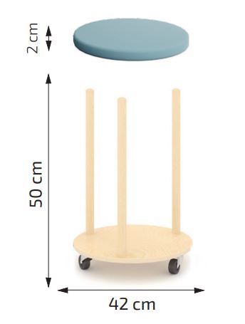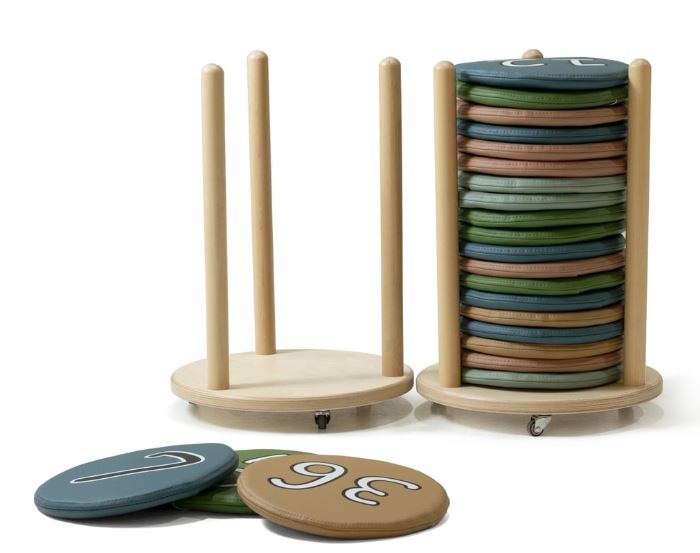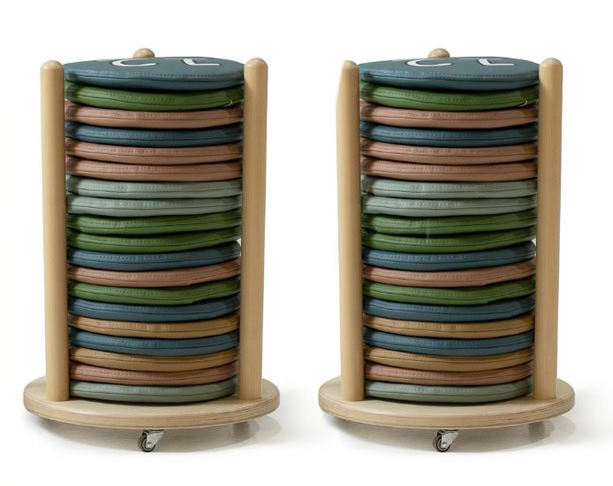 Vloerkussens voor kinderen met een verrijdbaar opbergrek, ideaal om op de grond te zitten tijdens groepsactiviteiten, spelletjes of rustmomenten. Inclusief 2 opbergkarren, elk met 20 gestoffeerde en genummerde kussens. Het verrijdbare rek maakt het organiseren en vervoeren van de kussens in de klas gemakkelijk. Het ontwerp is perfect voor leeromgevingen in peuterspeelzalen en bevordert autonomie, orde en spelenderwijs leren. 40 gestoffeerde kussens, genummerd en uitgevoerd in synthetisch leer. 2 mobiele standaards gemaakt van berkenhout. Afgeronde randen voor de veiligheid in het klaslokaal van de kinderen. 2 jaar garantie