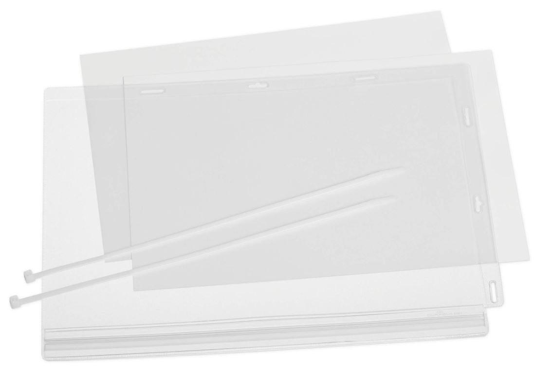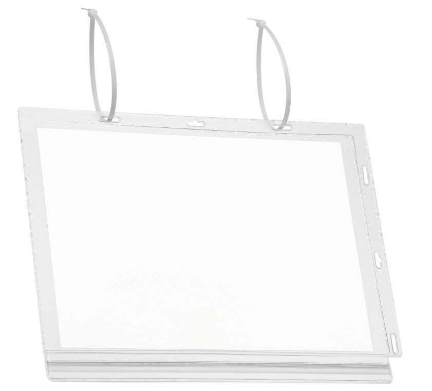 Durable waterbestendige hoes, met kabelbinders, formaat A4, pak van 5 stuks. Ideaal voor het weergeven van informatie buitenshuis. De waterdichte druksluiting beschermt de inhoud. IPX5-norm getest bescherming tegen waterstralen uit alle richtingen. Transparante UV-gestabiliseerde en weerbestendige, krasbestendige folie met antireflecterend effect. Kan zowel in staand als liggend formaat worden gebruikt. Inserts kunnen snel en makkelijk gewisseld worden. Capaciteit: 2 vel 160 g inbegrepen. Pak van 5 stuks. A4, inclusief 2 kabelbinders.