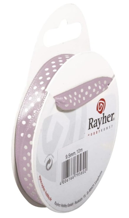 Satijnlint met stippen, 9.5 mm, lengte 10 m, roos