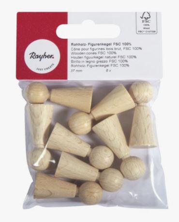 Praktisch formaat: 37 mm. Vervaardigd uit premium hout voor langdurig gebruik. Set van 8 houten figuurkegels die fijne motoriek en hand- en oogcoördinatie promoten. Kunnen versierd of ingekleurd worden.