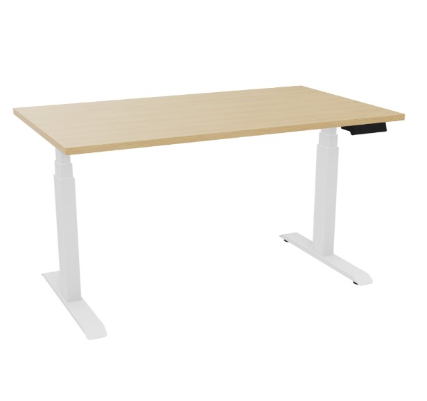 Axel 2 rechth. bur B. 140 x D. 80 cm - Voorgeboord vr kabeldoppen -Elektrische hoogteregeling - Blad dikte 25 mm in Naturel eiken - onderstel wit glad metaal - 4 gebruikers x 2 memory + USB