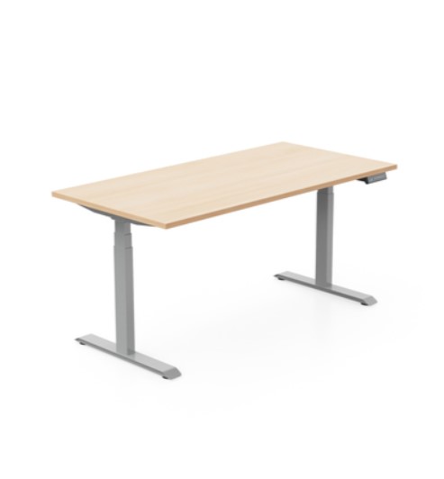 Axel 2 rechth. bur B. 160 x D. 80 cm - Voorgeboord vr kabeldoppen -Elektrische hoogteregeling - Blad dikte 25 mm in Naturel eiken - onderstel zilver grijs glad metaal - 4 gebruikers x 2 memory + USB
