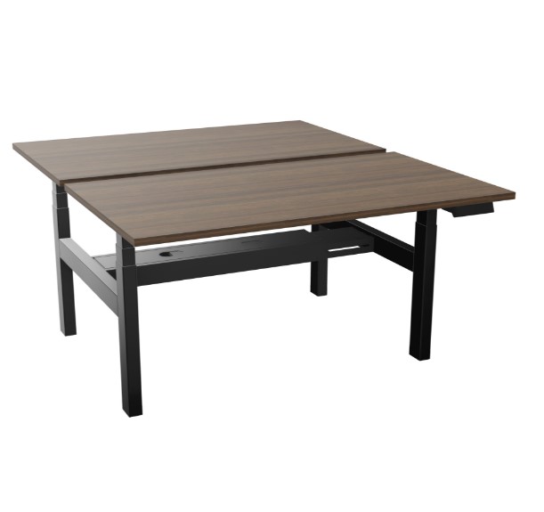 Axel 2 bench bureau B. 140 x D. 80 cm - Elektrische hoogteregeling - Blad dikte 25 mm voorgeboord voor 2 kabeldoppen in bruin notelaar melamine - onderstel zwart glad metaal - 4 gebruikers x 2 memory + USB