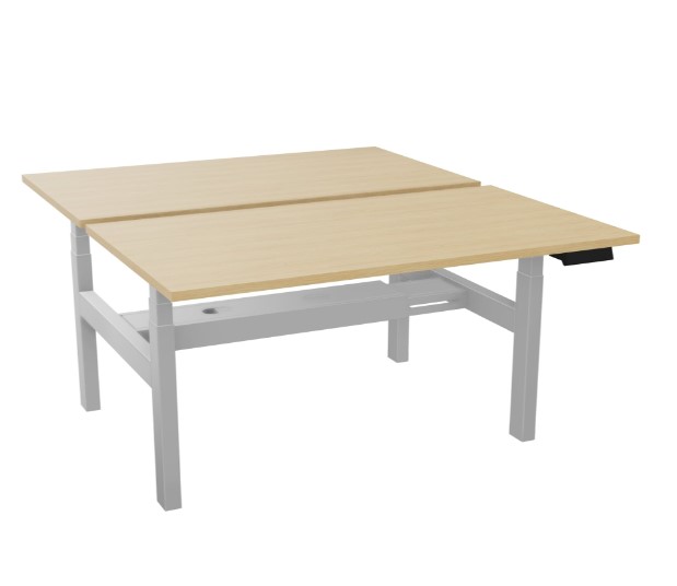 Axel 2 bench bureau B. 140 x D. 80 cm - Elektrische hoogteregeling - Blad dikte 25 mm voorgeboord voor 2 kabeldoppen in Naturel eiken - onderstel zilver grijs glad metaal - 4 gebruikers x 2 memory + USB