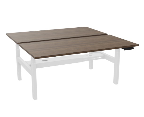 Axel 2 bench bureau B. 160 x D. 80 cm - Elektrische hoogteregeling - Blad dikte 25 mm voorgeboord voor 2 kabeldoppen in bruin notelaar melamine - onderstel wit glad metaal - 4 gebruikers x 2 memory + USB