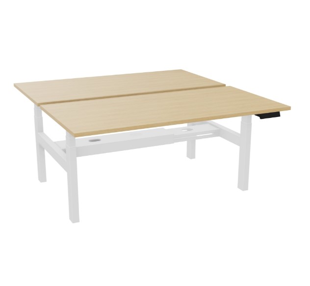Axel 2 bench bureau B. 160 x D. 80 cm - Elektrische hoogteregeling - Blad dikte 25 mm voorgeboord voor 2 kabeldoppen in Naturel eiken - onderstel wit glad metaal - 4 gebruikers x 2 memory + USB