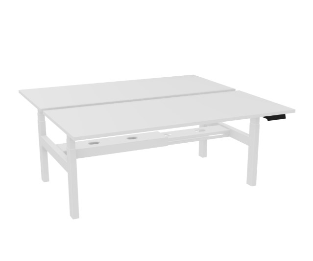 Axel 2 bench bureau B. 180 x D. 80 cm - Elektrische hoogteregeling - Blad dikte 25 mm voorgeboord voor 2 kabeldoppen in sneeuw wit melamine - onderstel wit glad metaal - 4 gebruikers x 2 memory + USB