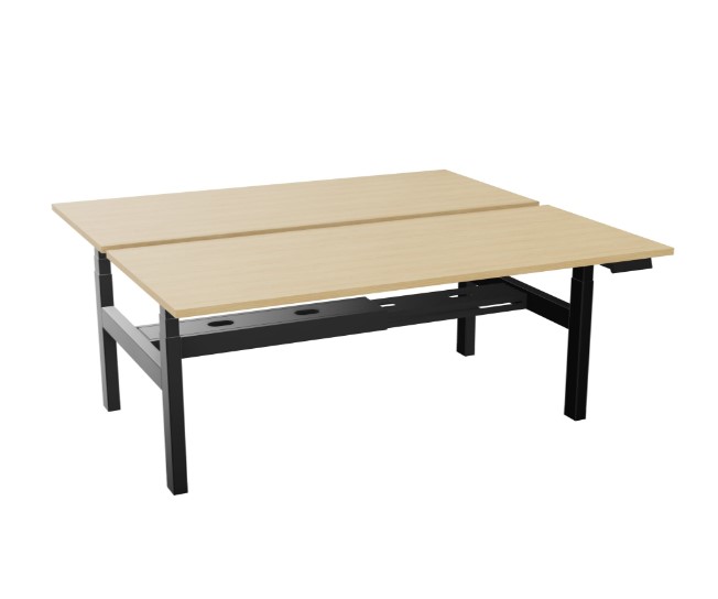 Axel 2 bench bureau B. 180 x D. 80 cm - Elektrische hoogteregeling - Blad dikte 25 mm voorgeboord voor 2 kabeldoppen in Naturel eiken - onderstel zwart glad metaal - 4 gebruikers x 2 memory + USB