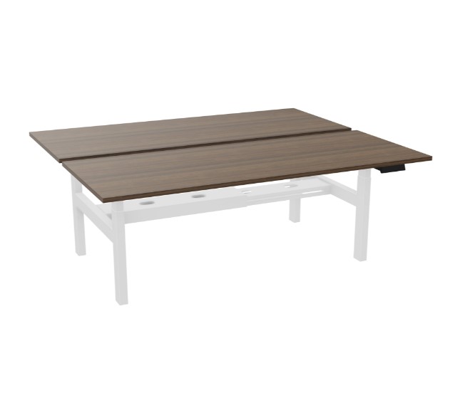 Axel 2 bench bureau B. 200 x D. 80 cm - Elektrische hoogteregeling - Blad dikte 25 mm voorgeboord voor 2 kabeldoppen in bruin notelaar melamine - onderstel wit glad metaal - 4 gebruikers x 2 memory + USB