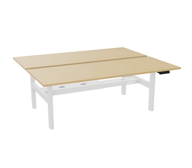 Axel 2 bench bureau B. 200 x D. 80 cm - Elektrische hoogteregeling - Blad dikte 25 mm voorgeboord voor 2 kabeldoppen in Naturel eiken - onderstel wit glad metaal - 4 gebruikers x 2 memory + USB