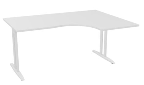 Asymmetrisch hoekbureau Idol met melamine blad 25 mm dikte en een centrale vaste poot centrale poot is inbegrepen. Extra steunpoot dient men apart bij te bestellen, voor wit 15070SO, voor aluminium 15070SA. Bureau met vaste hoogte 73,5 cm. Hoek rechts L 160 cm. Bestaat voor 48% uit gerecycleerd. Kleur blad: wit. Kleur poot: wit.