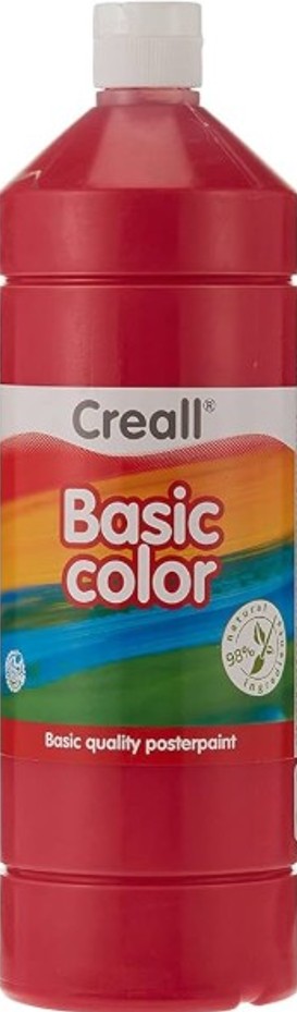 Plakkaatverf Creall basic rood 1000ml op waterbasis, bestaande uit 98% natuurlijke grondstoffen. Gebruiksklaar, redelijke dekkracht en een goede hechting op de meeste ondergronden. Kleuren onderling mengbaar en na droging mat. Niet uitwasbaar.