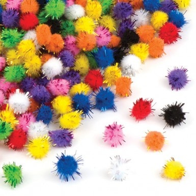 PK 150 ZELFKL. GLITTERPOMPONS 10MM