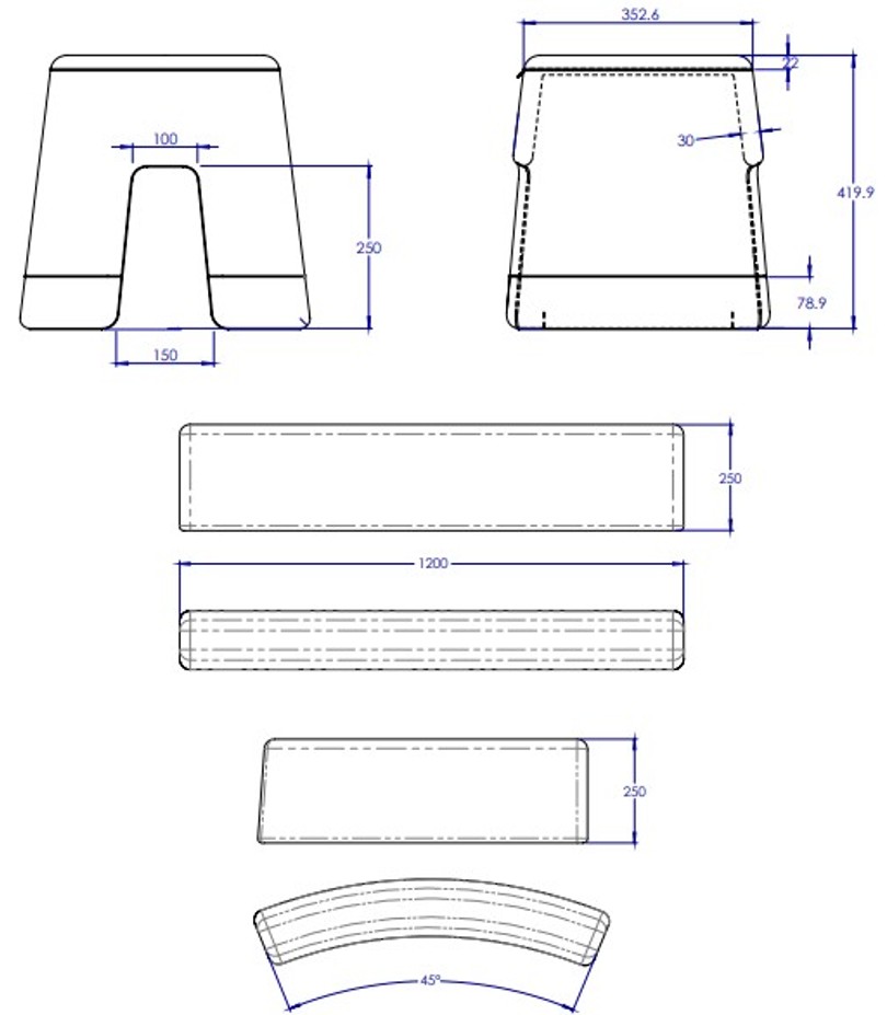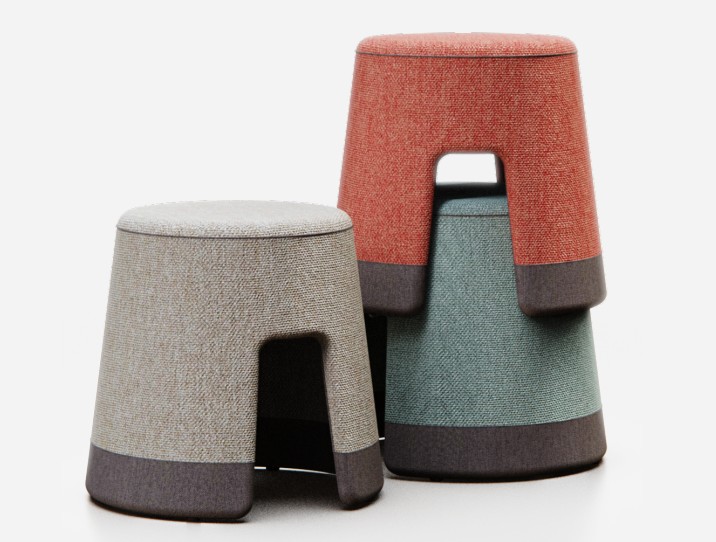 Modulaire Gestoffeerde schoolkruk in houten structuur, ontworpen om ruimtes voor ontspanning en interactie te creƫren in onderwijscentra. Ideaal voor klaslokalen, receptieruimtes, universiteiten of bibliotheken. Combineerbaar en stapelbaar om verschillende opstellingen te vormen.